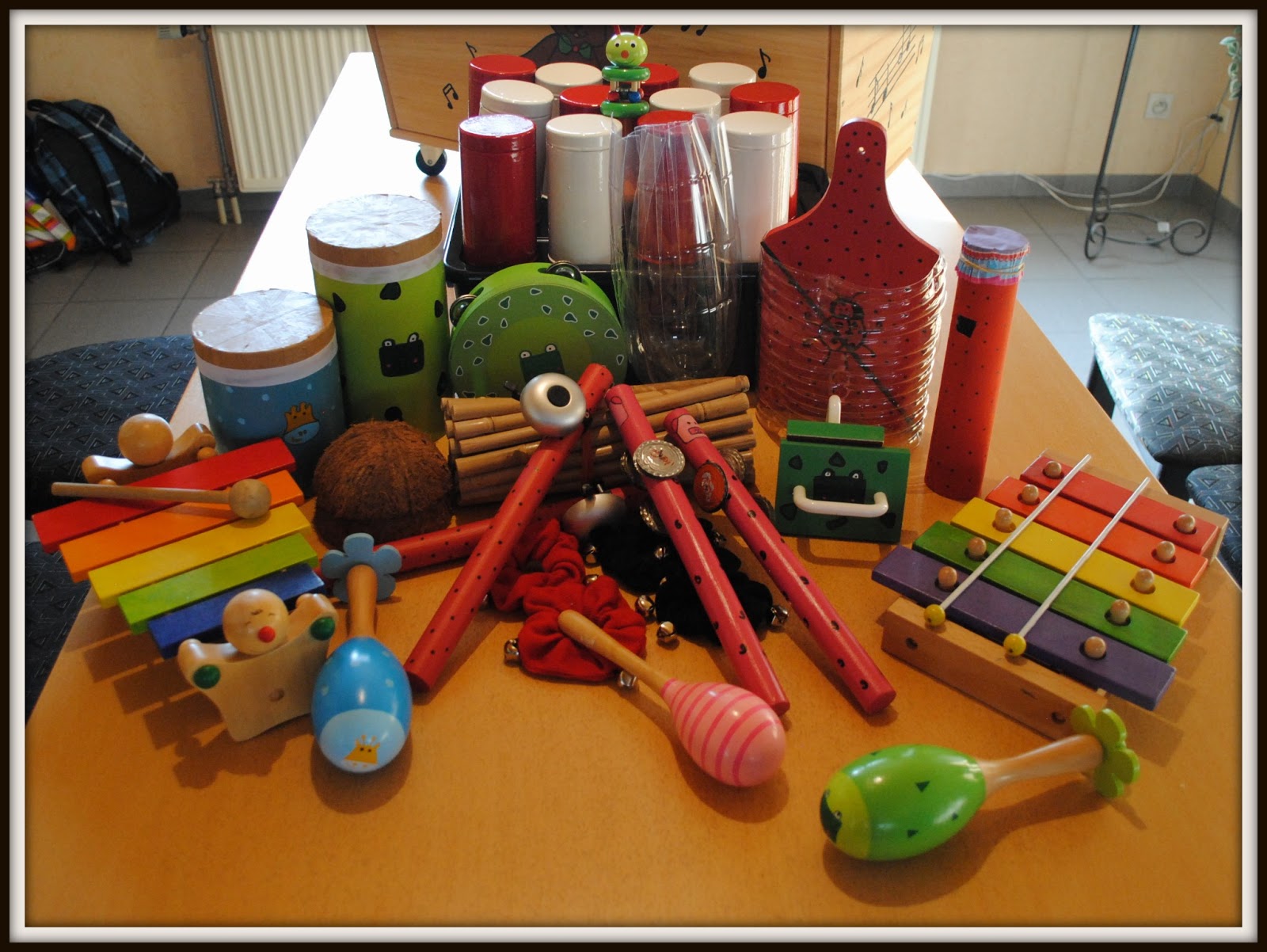 Een tafel vol instrumenten, we kunnen muziek maken à volenté...!